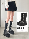 配色ラインレースアップ厚底ロングブーツ[zr1401]