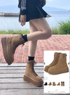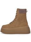 スエード調素材で仕立てたレースアップブーツ。厚みのあるソールが存在感を放ち、スタイルアップ効果も叶える。