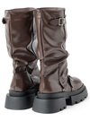 艶のあるフェイクレザーを使用した、トレンドライクなカバーロングブーツ。アクセントのベルトモチーフやくしゅくしゅとしたルーズ感がデザインポイント。