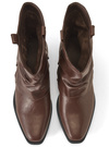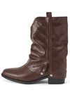 マットな質感のフェイクレザーを使用した、カジュアルコーデにぴったりなウエスタン風デザインのブーツ。カバーをかけたような、くしゅっとしたボリューム感が魅力。