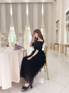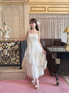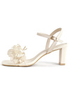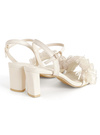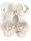 立体的なオーガンジーフリルをあしらったボリューム感たっぷりのサンダル。細かいリボンをランダムに散りばめることで、ガーリーな雰囲気を演出。