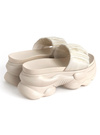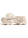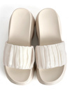 柔らかなオーガンジー生地をくしゅくしゅとさせた、フェミニンムード漂うサンダル。厚底デザインが足元にボリューム感をプラスし、スタイルアップが叶う。