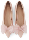 チュール素材のリボンがポイントになった大人フェミニンなパンプス。