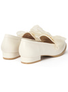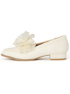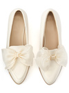 オーガンジー素材のふんわりとしたリボンがポイントになったローファー。ややシャープなフォルムにすることで、甘すぎない印象に仕上げた。