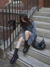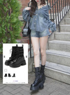 ボリューム感のある厚底ヒールは脚長効果◎。