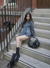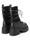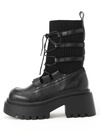 フェイクレザーとリブニット生地を組み合わせたミドルブーツ。レースアップディテールを加えることで、さらにエッジを効かせたデザイン。