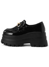 ボリュームたっぷりなタンクソールの厚底が魅力のローファー。光沢のあるエナメル素材を使用しており、つやつや感がコーデのアクセントに。