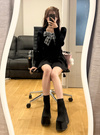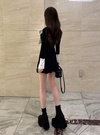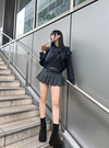 ボリュームたっぷりの厚底ヒールは、身長が盛れて脚長効果抜群。