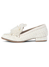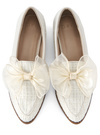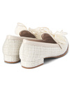 キラッと感のあるフィルム糸を織り交ぜたツイード調素材のローファー。ふんわりとしたオーガンジーリボンが華やかさを添えるアクセント。